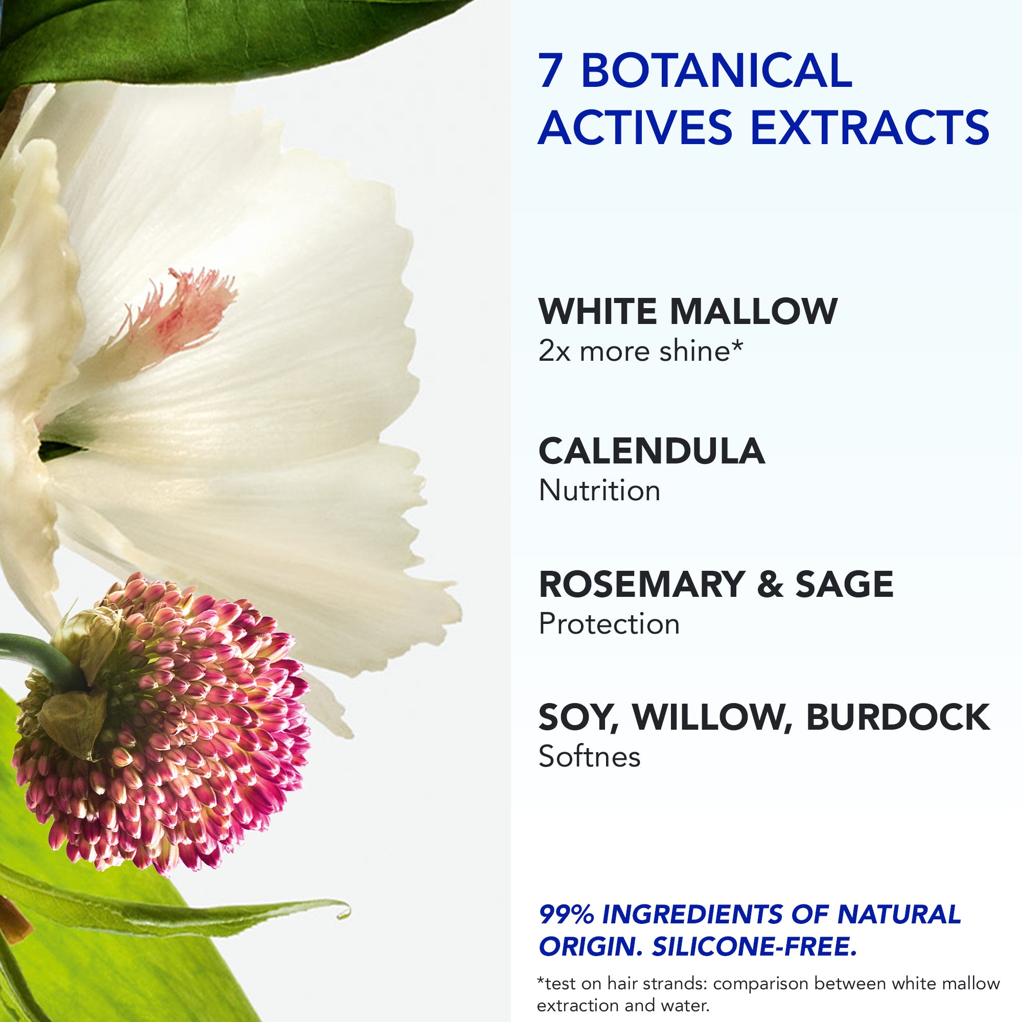 Our white mallow extraction delivers twice as much shine and softens the hair fiber.***