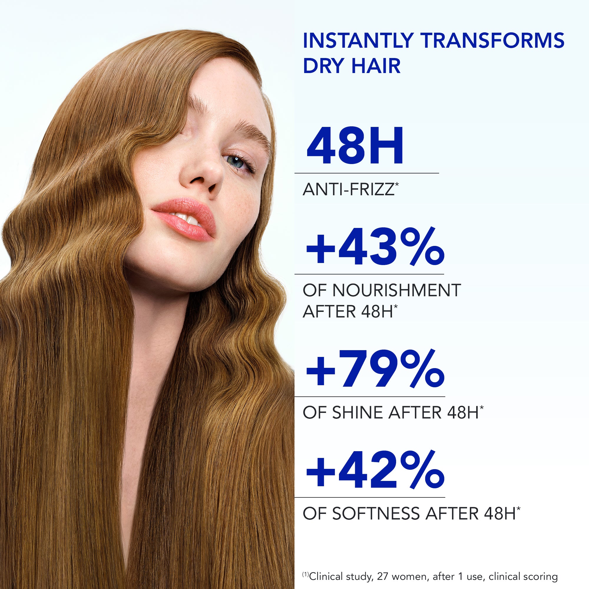 Its silky, melting texture nourishes lengths and ends while helping keep hair disciplined for up to 48 hours of anti-frizz protection.